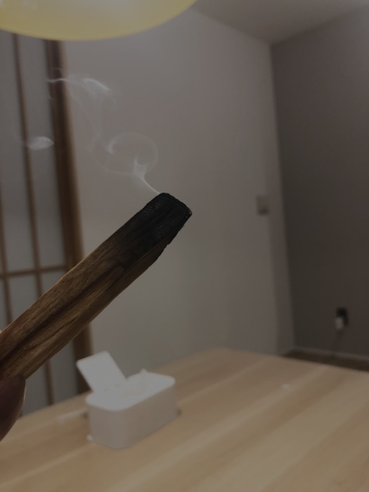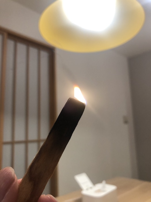 パロサントを炊く サロンワーク 2025.01.26 パロサントはペルーの香りがする木の事。 いい香りがするらしいので買ってみた。 ちなみに、これで600円。 火を灯して 燻す 家族にくさいと言われました。 あれ? にほんブログ村
