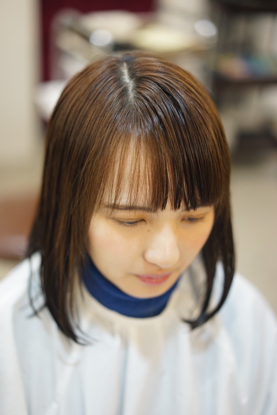 前髪もやや短めに流れるように切ります。