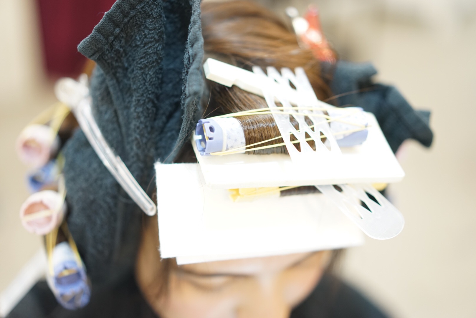 パーマを巻いていきます