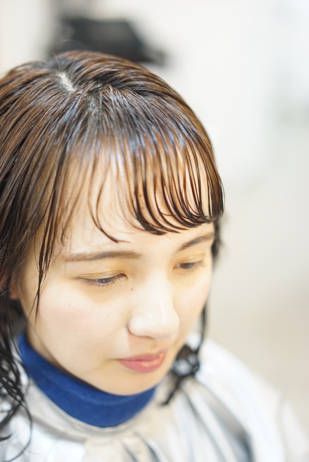 前髪も、パーマで流れやすくなるようにカットしていきます。