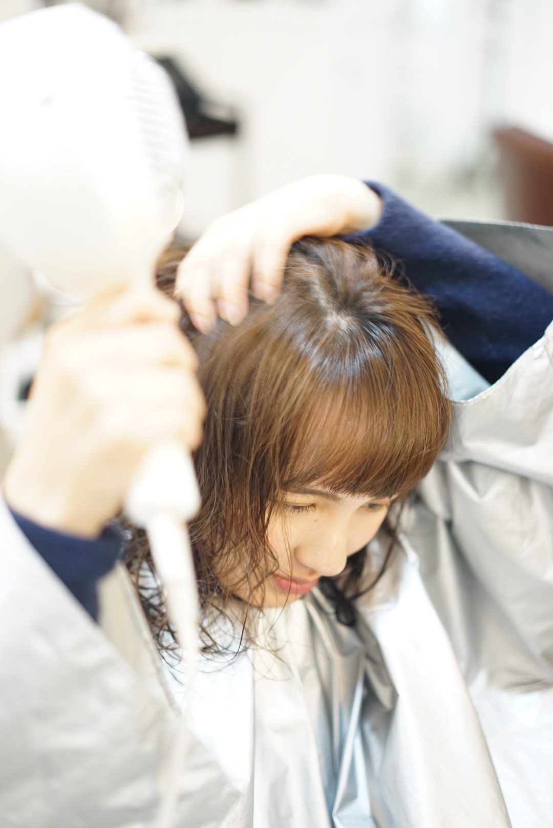 ある程度乾いてきたら、毛先を持ち上げながら乾かしていき、ニュアンスを出していって完成!!