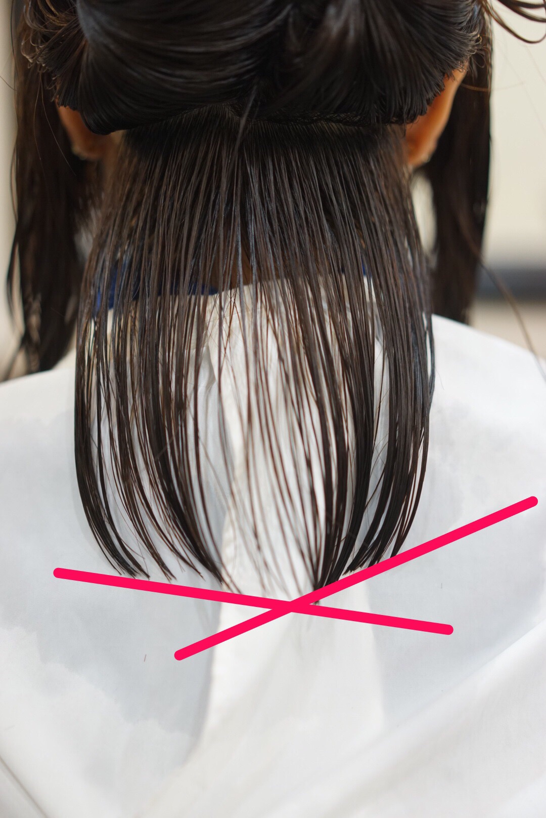 ①毛先が まっすぐなので硬い印象をうける