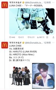 LUNA SEAをルナチーとしてテリヤキバーガーにチーズ挟んだメニューとチーチーダブチー(ダブルチーズにチーズ×2)