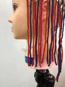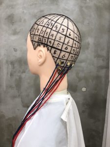 毛糸を使用して、髪に見立ててカットの展開図をイメージしやすいようにしています。