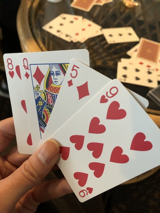 みんなそれぞれ出掛けてしまい、1人でトランプをずっときって過ごしてます。