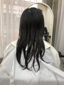 大体の流れは、お子さんの髪をカットして→お母さん