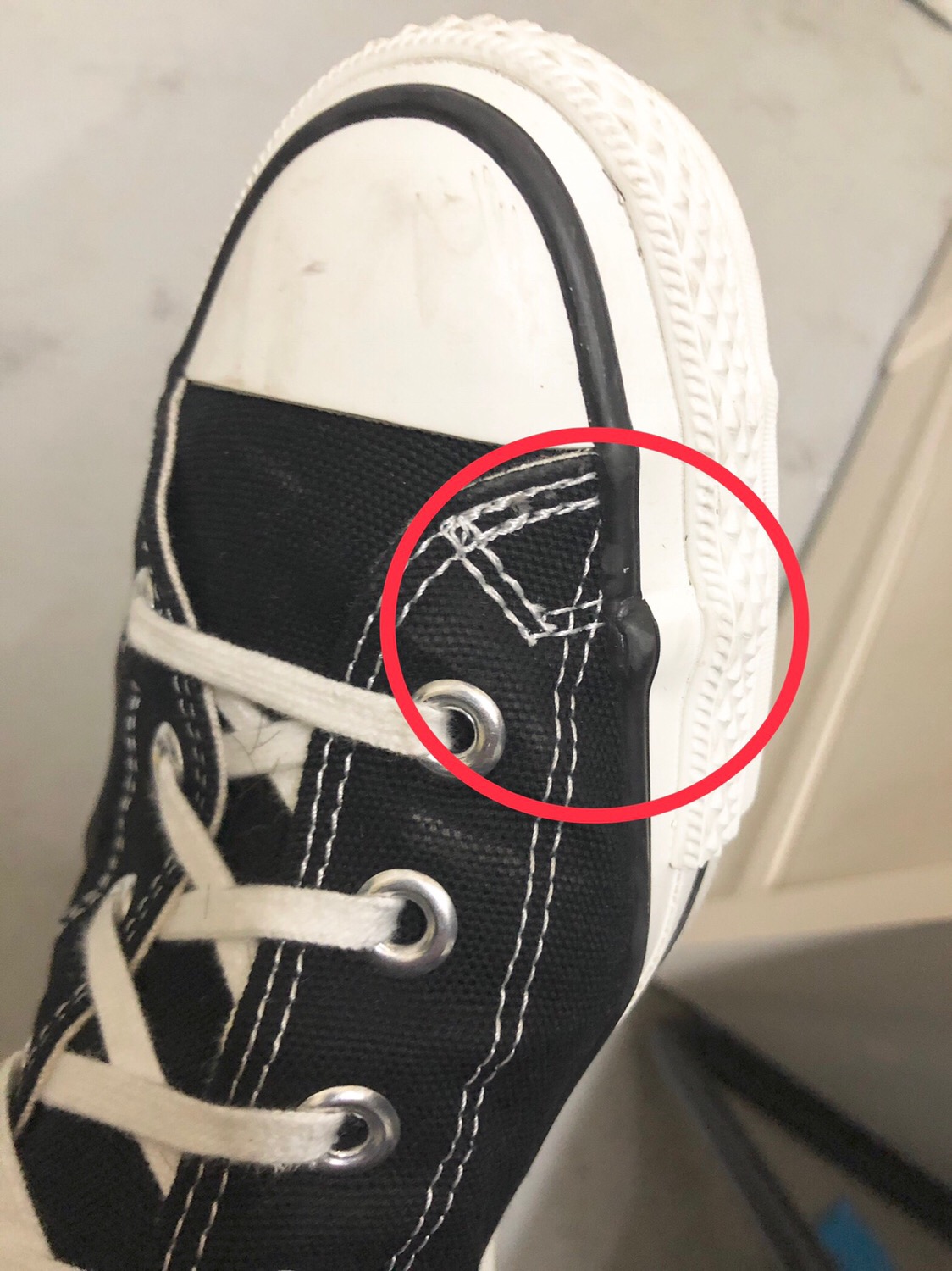 オールスターあるあるなのですが、過去にオールスターを履いたことある方は、この部分に穴が空く現象に陥った方多いと思います。